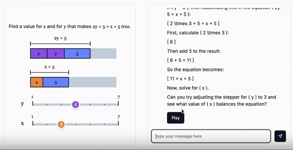 I built an open-source toy AI Math Tutor where the learner and the bot engage with an interactive activity.