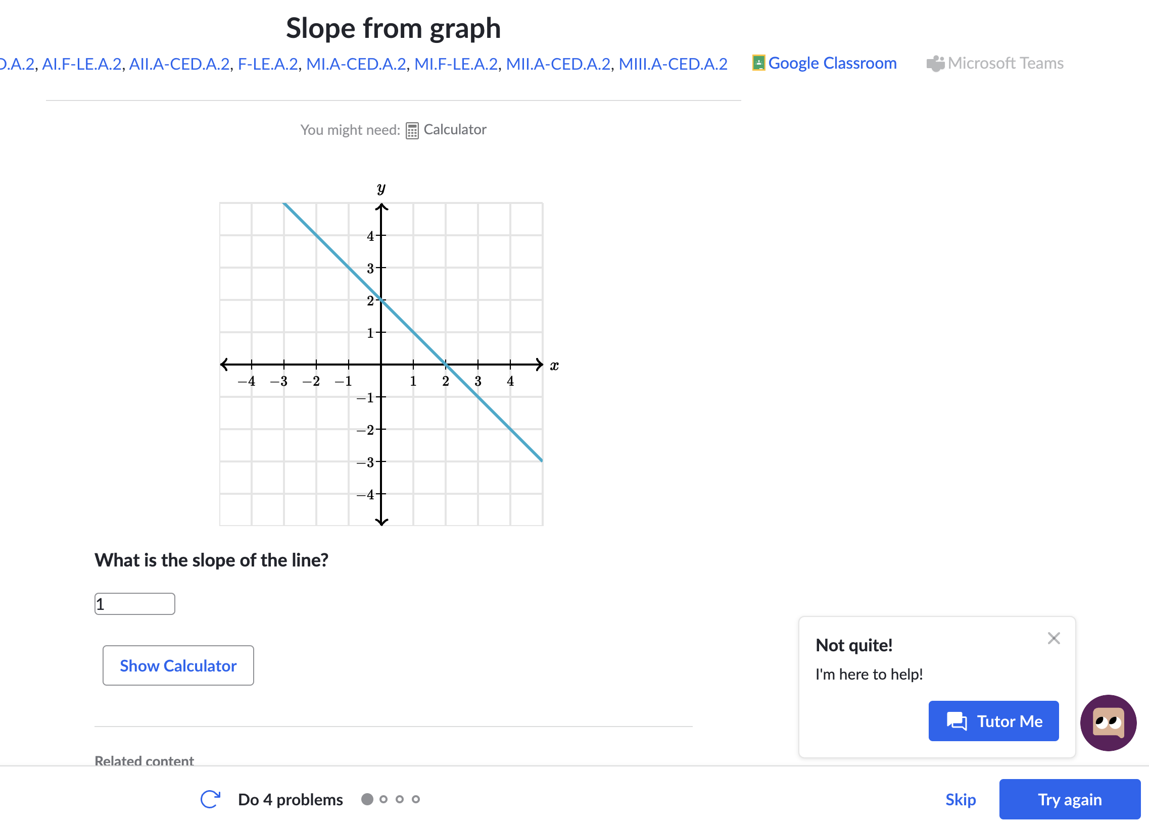 Here is how the platform works when I answer a question about the slope of a line incorrectly.